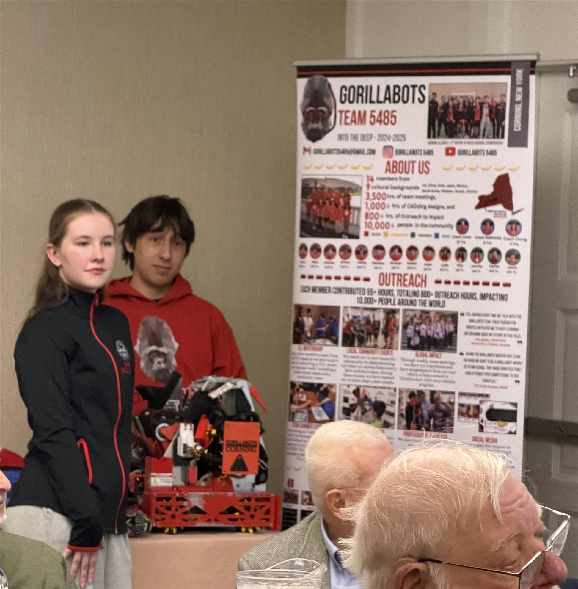 Regular Rotary lunch meeting featuring the Gorilla Bots Competition team from Southern Tier schools.Attendance and interest was high and there were a good number of guests including Roteract students who received their official club certificate.