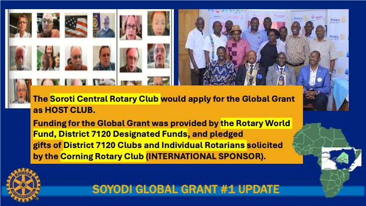 SOYODI PROJECT UPDATE Ray - gave us a wonderful presentation regarding the global grant project and the work that's going on in Soyodi. Please click the link to watch the video and meet the program participants β and see what they've accomplished. This is a project that is going far! There are opportunities to become a sponsor. π₯ video