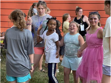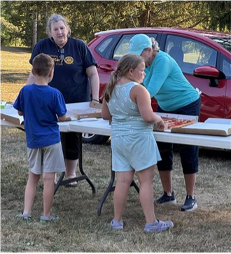 Monday, August 11th, was the Corning club’s Pizza and Dance Night at Camp STAR, a week-long camp for children, ages 6 through 12, with a physical or developmental disability that might keep them from enjoying a typical camping experience. Supported by eight Rotary clubs in the Southern Tier, the camp was held at the Y at Watson Woods, a 400-acre family event and retreat center a hop, skip and jump from Corning. The various Rotary Clubs provide special entertainment and activities throughout the week. Eight Rotarians from the Corning club served pizza, donated by Wegman’s, and DJ Curtis, supplied by Bobby K Entertainment, provided the music. It is wonderful to see the number of returning campers and counselors. Never doubt how much Camp STAR means to the community and the campers! |